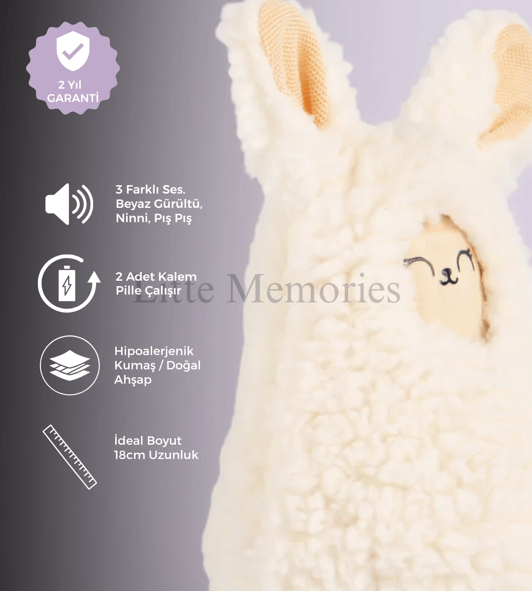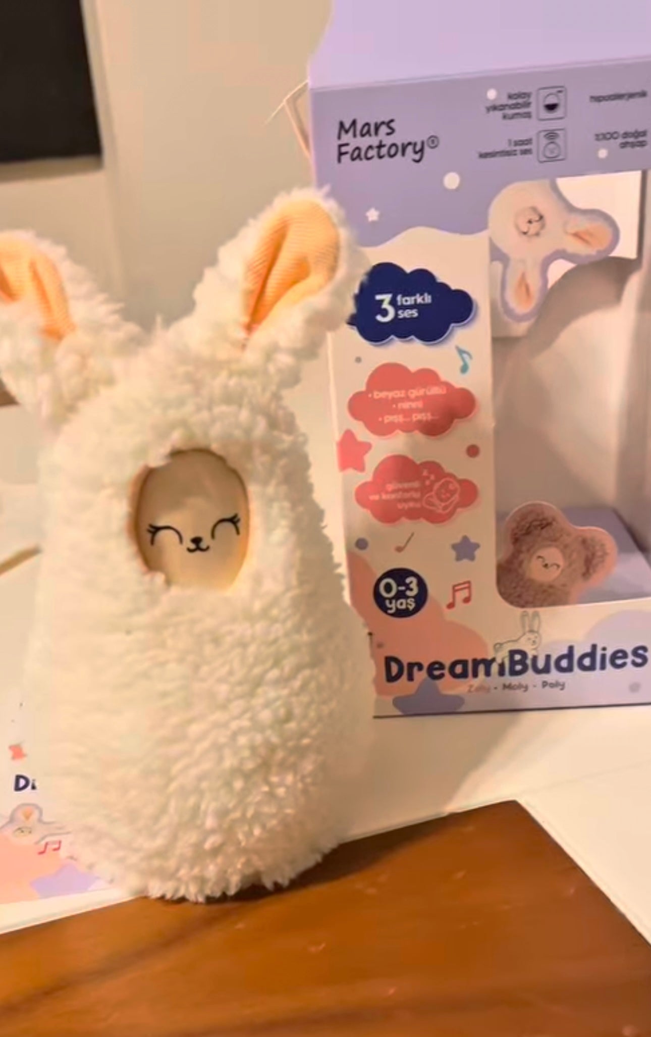 Uyku arkadaşı, bebeğin kendini güvende hissetmesini ve uykuya daha kolay geçmesini sağlar. “Pış pış”, “ninni” ve “beyaz gürültü” sesleriyle bebeği sakinleştirir.